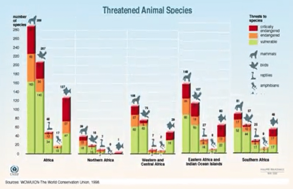 The 2014 living planet report which is the world’s leading science based analysis of the heart of our planet andthe impact of human activity states that 52% of all animals have been wiped out in 40 years. The last update of the IUCN Species showed that of 64,000 species examined worldwide, almost 20,000 are treated by extinction. Nearly a third of the total including 41% of amphibian species, 33% of reef building corals,30% of conifers, 25% of mammals and 13% of birds, and one-fifth of plant species.