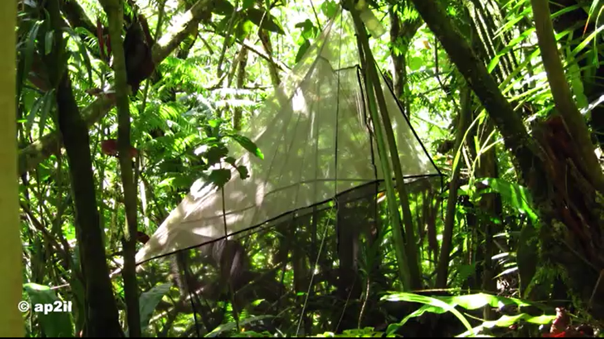 Technical logical umbrellais very similar to a normal umbrella when you put under trees,for instance, you shake the tree and old animals fall down, and you can collect these animals inside the umbrella. The is a simple tent, is like a camping tent. That is open everywhere, but there is some that surround so animals can go inside from one side and enter inside this kind of tent, and you catch and collect the animal there you can identify.