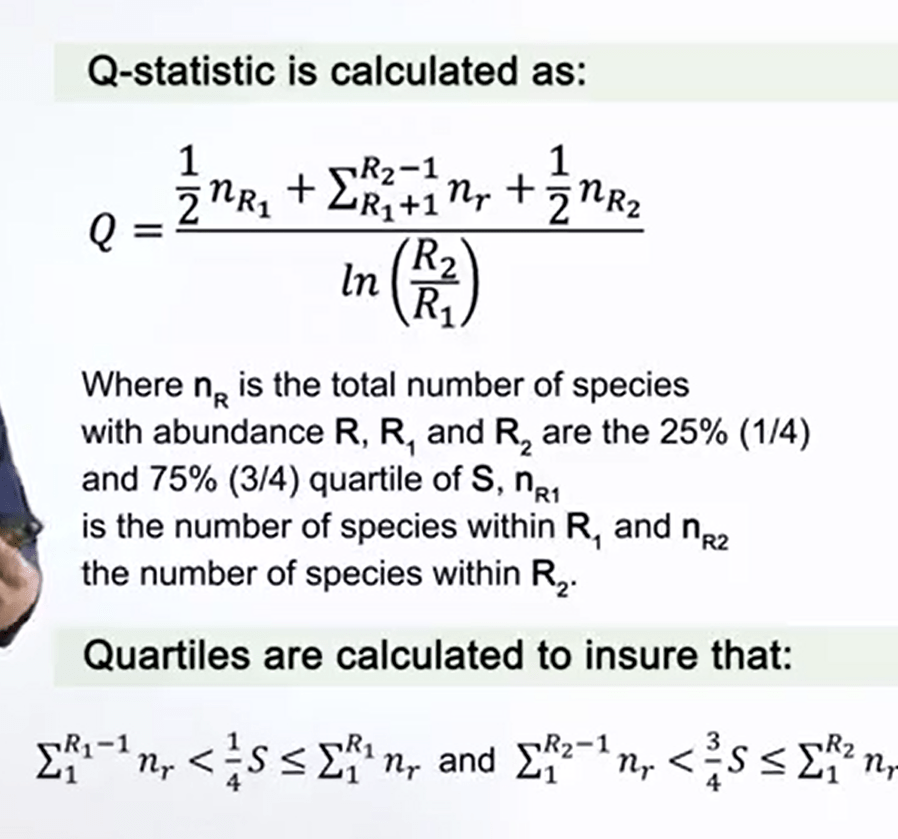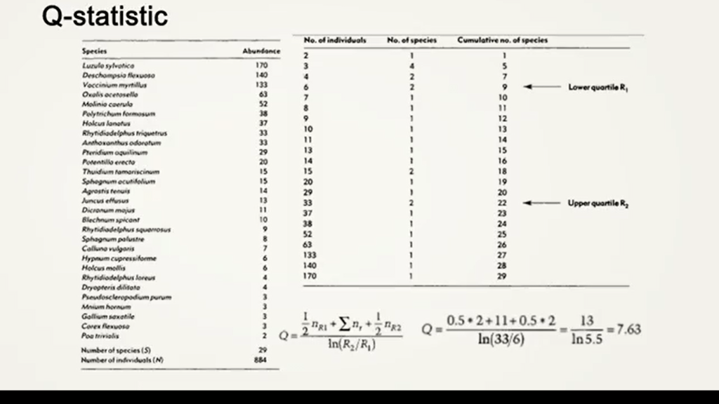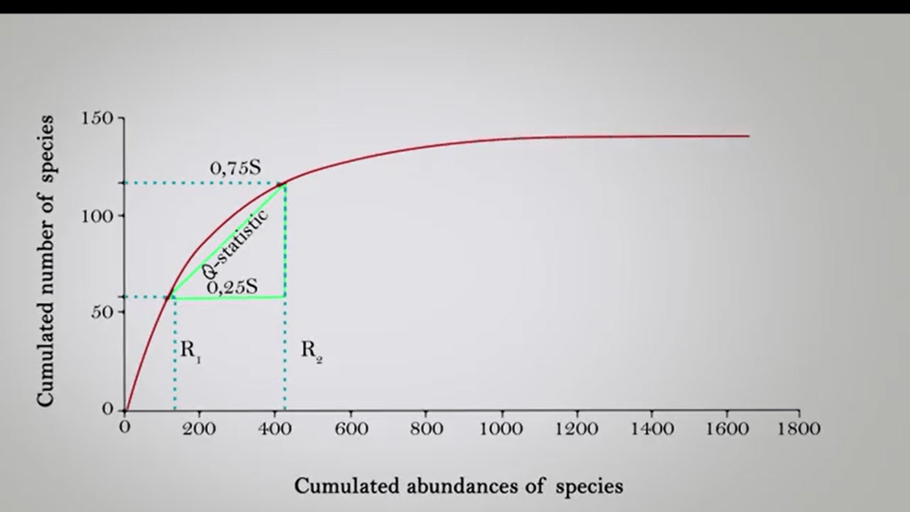 Another way to represent biodiversity in species. In this case you use look of cumulation curve that is called Q-statistic and you use the 0.25 and 0.75 to calculate this And then this can be a measure of biological diversity.