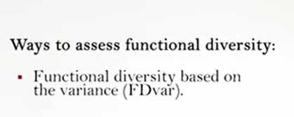 Functional diversity are based also on variance. So, we can find a way to calculate the functional diversity based on variance that is simply the weighted sum of the abundances of the square of the values of trades observed. And therefore, is an analog of the weighted variance.