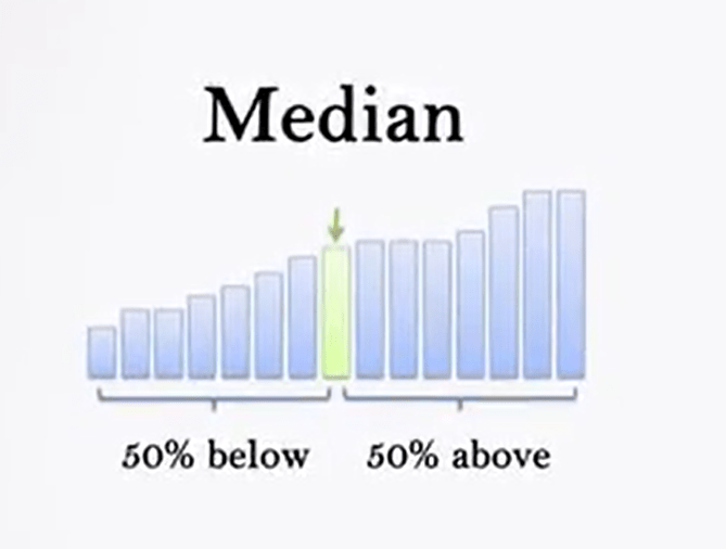 Median is the value assumed by statistical units that are located in the middle of the distribution. The median, in fact, is the central value of a series. So, it can be calculated by distributing the data in ascending order and identifying the value above and below which there is an equal number of data