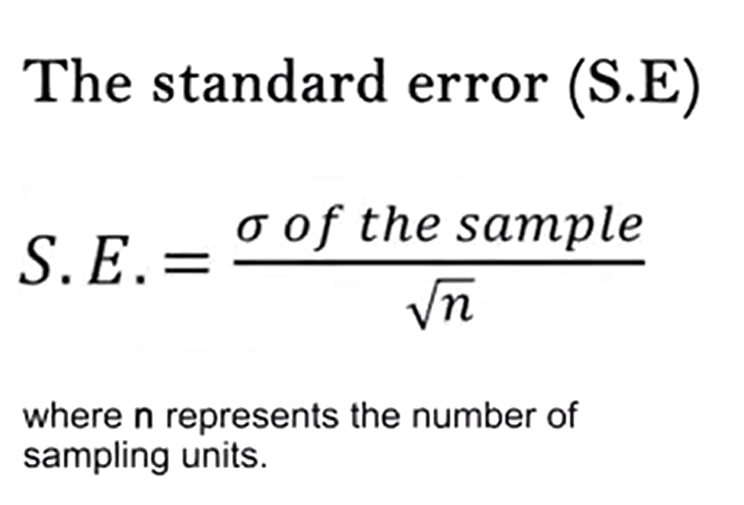 The standard error from the mean indicate show much the mean of the sample is close to the population mean. The standard error is simply the sigma or the s o the sample divided by the square root of n, where n represents the number of sampling units.
