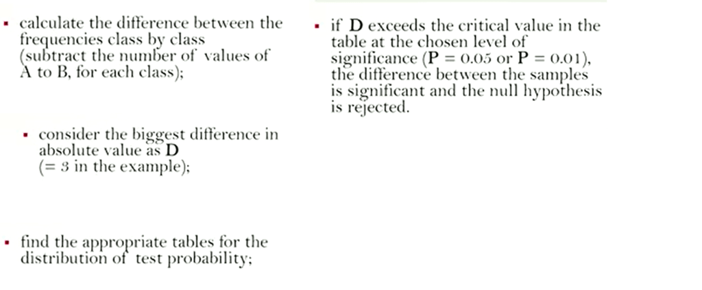 And if D, so the value you calculated exceed the critical value, in the table at the chosen levelof significance for P=0.05 or for P=0.01, the difference betweenthe samples is significant and then the null hypothesis can be rejected.